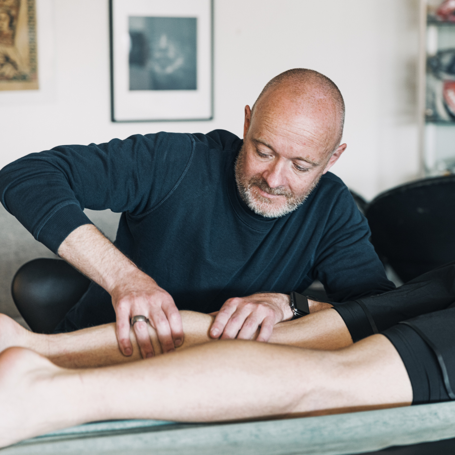 Den före detta professionella fotbollsspelaren Christopher Geertsen genomgick en behandling hos fysioterapeuten Nicklas Falkesgaard.