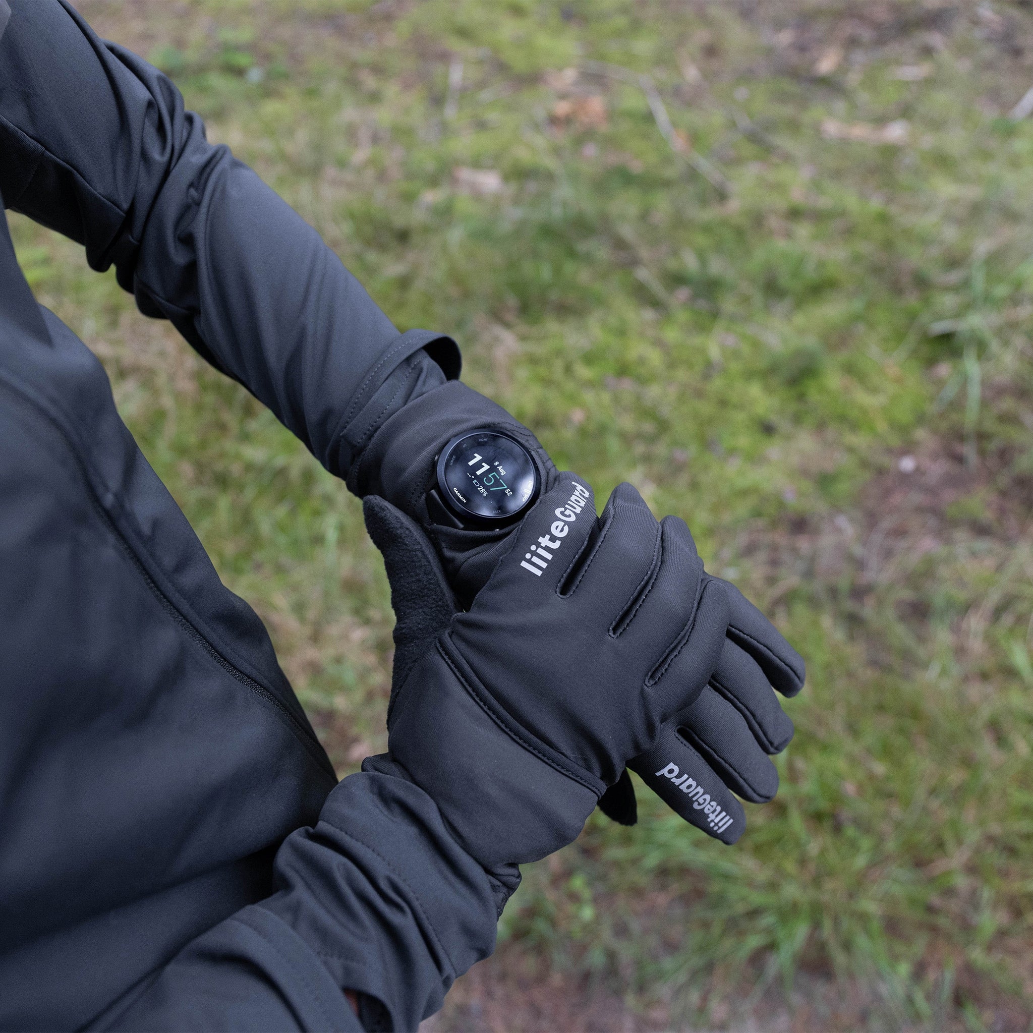 Löparhandsken har en mjuk, borstad insida för värme och komfort, samt silikon på handflatan för bättre grepp. På tummen finns en frottéyta som också fungerar som svett- eller snorduk. En praktisk detalj på löprundor där näsan kanske rinner snabbare än du. Reflekterande detaljer på handryggen ökar synligheten i mörker.