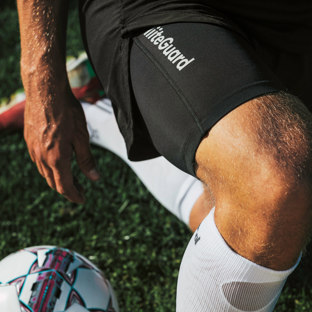 Utöver det, så är konstruktionen i materialet gjord med en lätt sportkompression. Syftet är att öka blodflödet, samt minska vibrationer och mikrotrauman i muskelvävnaden, så att musklerna är redo att prestera optimalt, även slutet av matcher eller träning då många skador ofta uppstår.