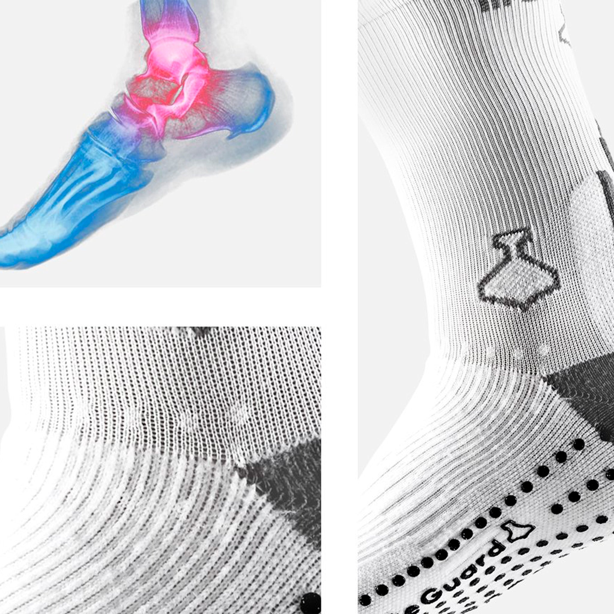 PRO-TECH är designad med små silikonprickar placerade runt båda ankelknölar. Placeringen av silikonprickarna täcker ledbanden och säkerställer ökad blodcirkulation i området, vilket även påverkar din proprioception. Din proprioception påverkar din reaktionsförmåga och ökar din stabilisering, samt kontroll av leder.